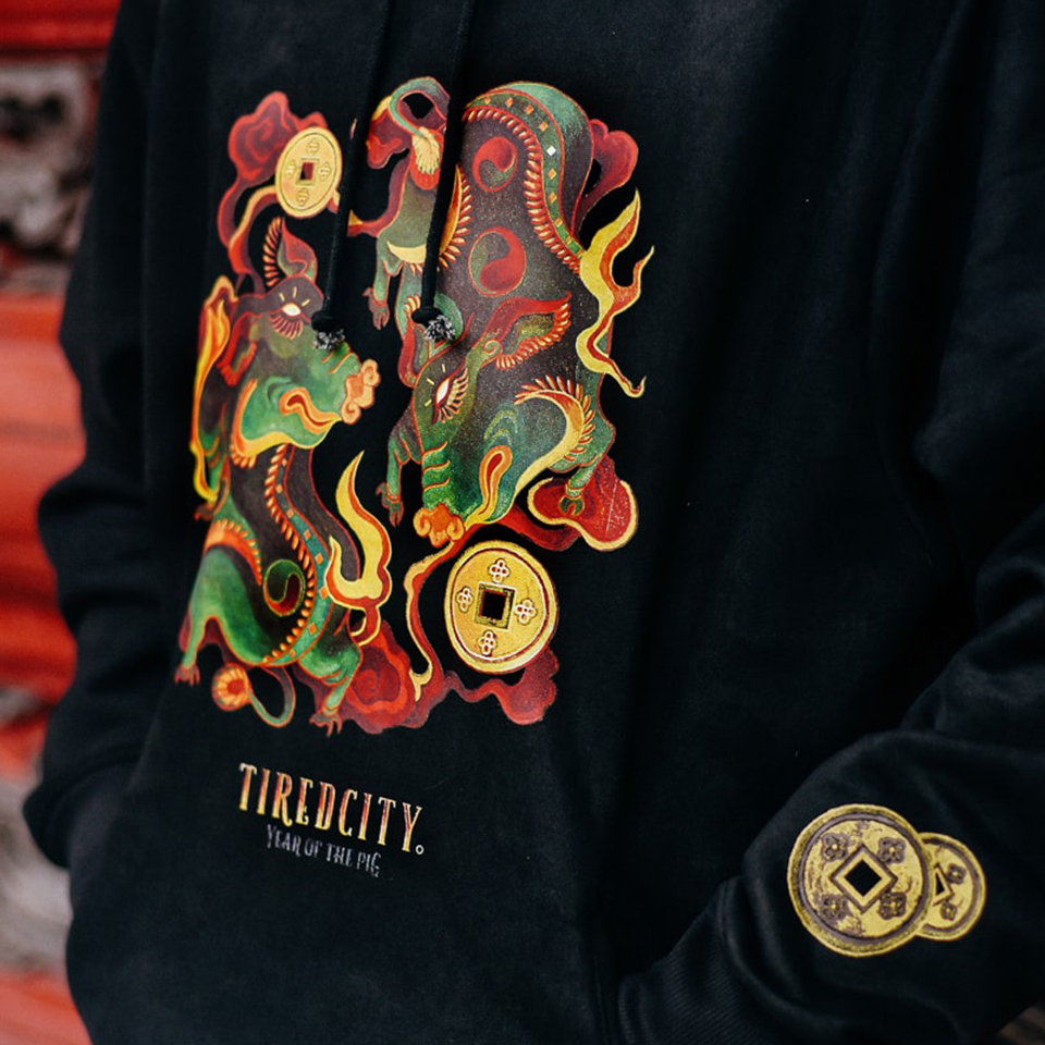Bộ sưu tập “Kỷ Hợi” là thành quả hợp tác giữa TiredCity và nghệ sỹ Bùi Tâm sau thành công của BST “Mid-Autumn” đã ra mắt hồi tháng 9/2018 với mẫu áo “Đầu Lân.”